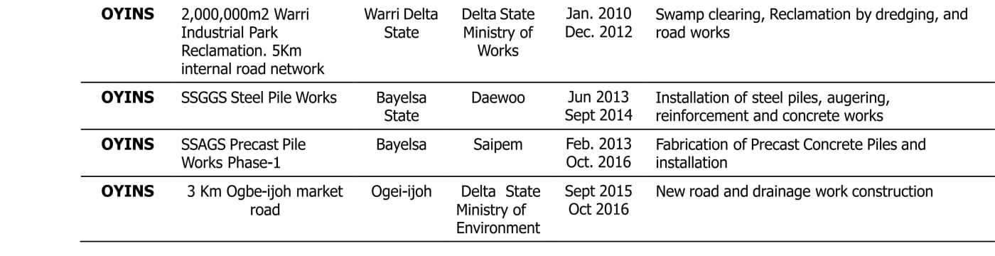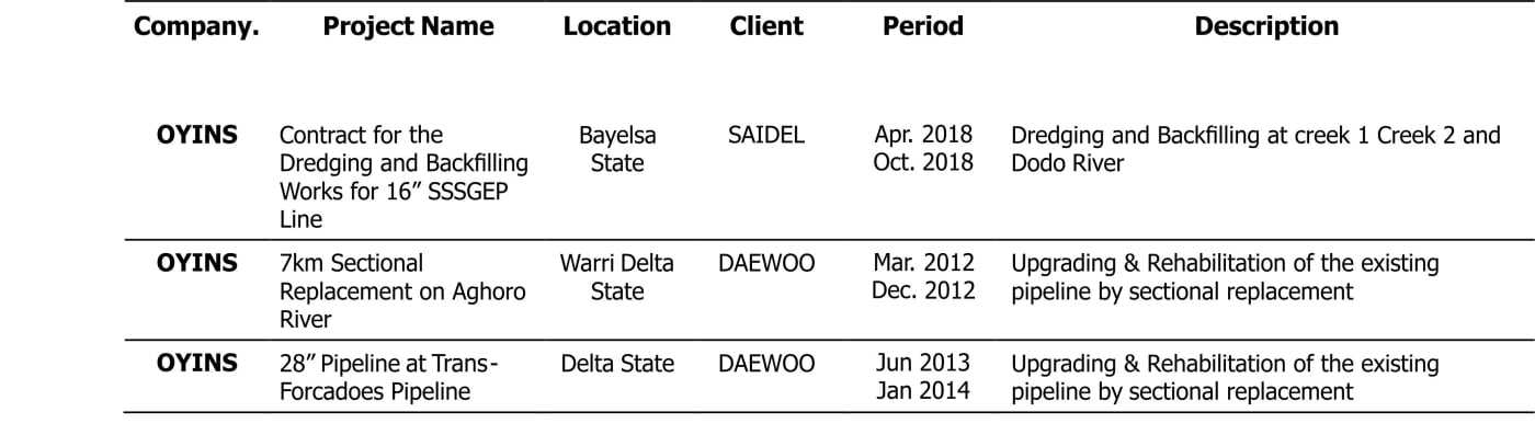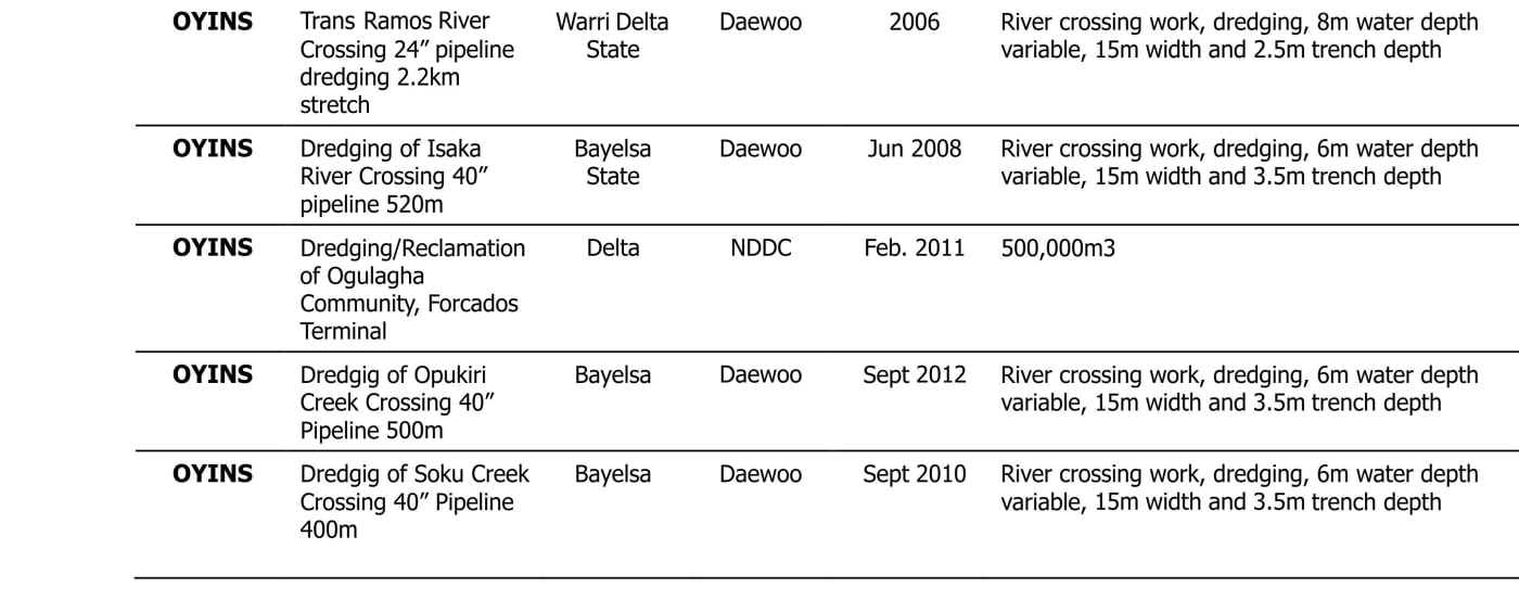 Clients: Nigerian Maritime Administration And Safety Agency (NIMASA) Contractor: Oyins Oil & Gas Limited