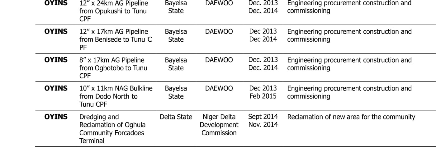 Clients: Daewoo Nigeria Limited/ SPDC Contractor: Oyins Oil & Gas Limited Period: Contract Awarded in 2018